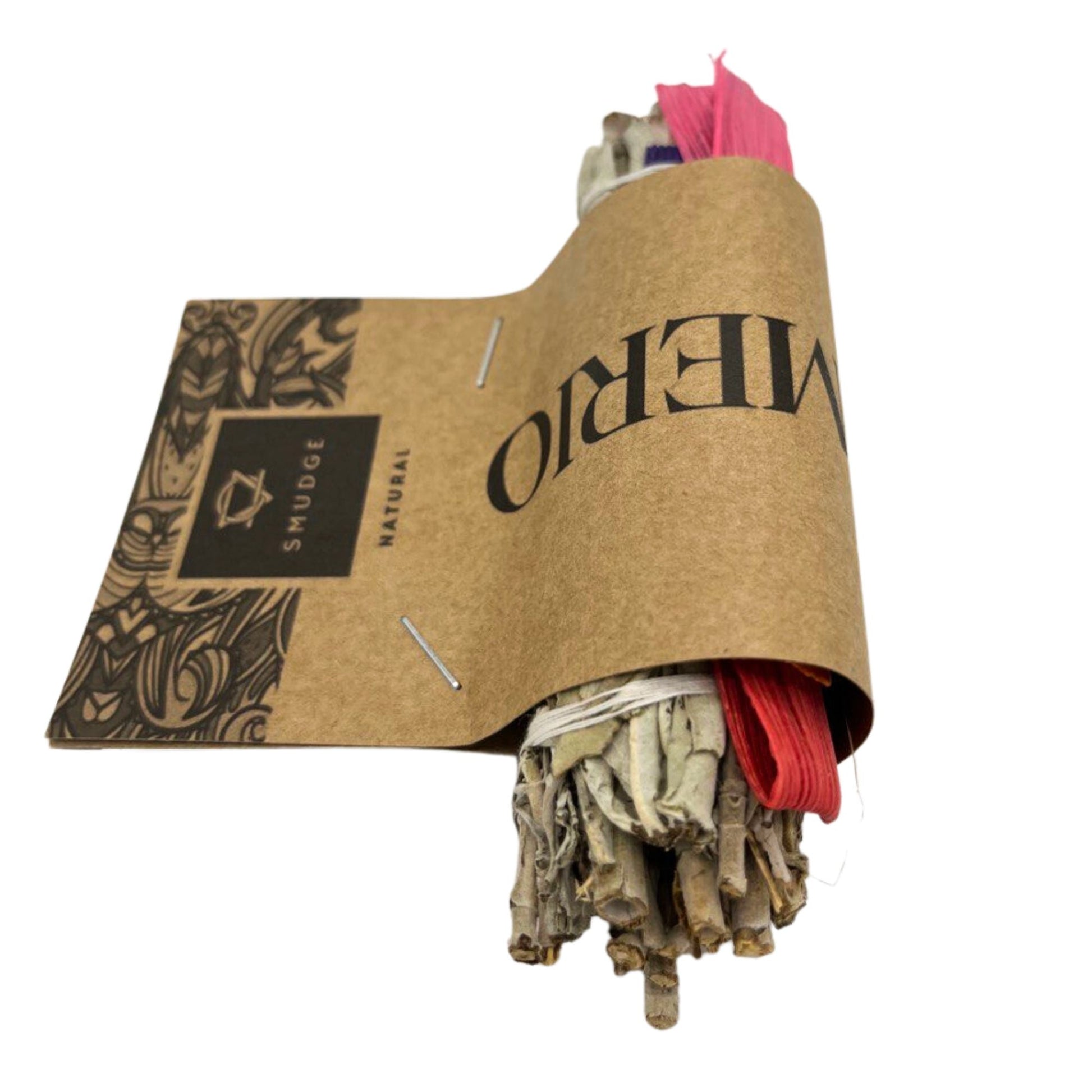 Atado artesanal elaborado con salvia blanca y hojas de maíz, una combinación especial asociada a la conexión con la tierra y la energía de abundancia.