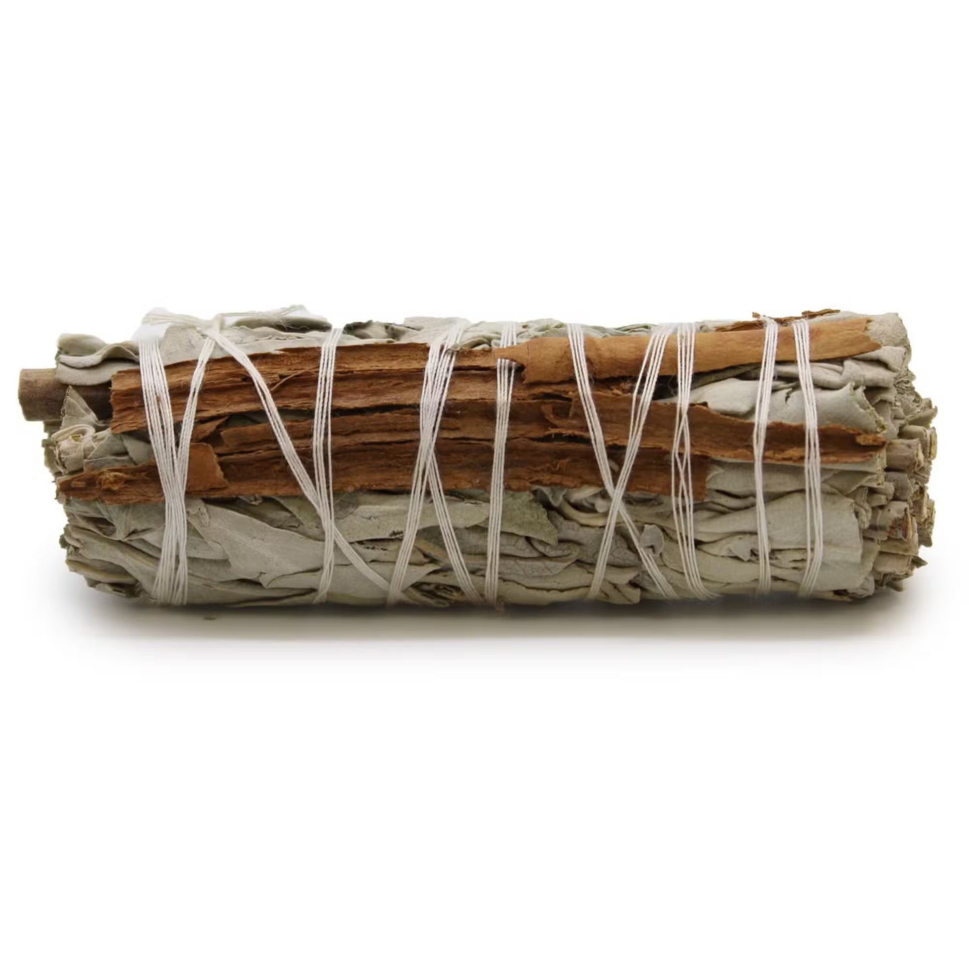 La salvia blanca ayuda a purificar y armonizar, mientras que la canela aporta calidez, vitalidad y prosperidad.