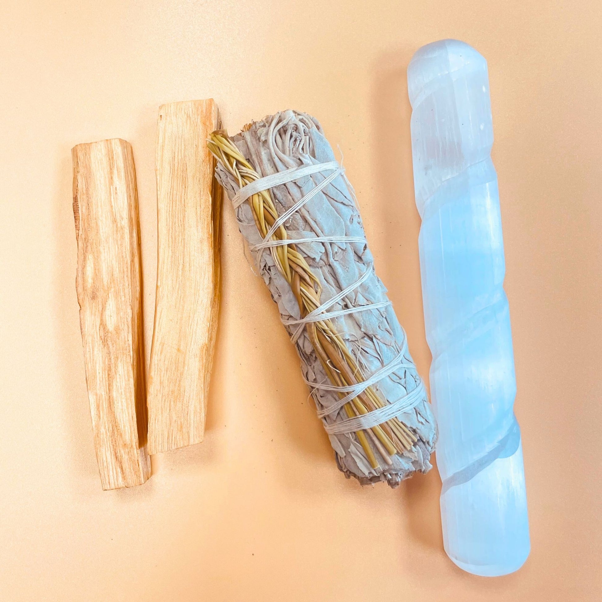 🧼 1 barra de selenita: piedra de alta vibración que limpia y recarga otras piedras, espacios y el aura.